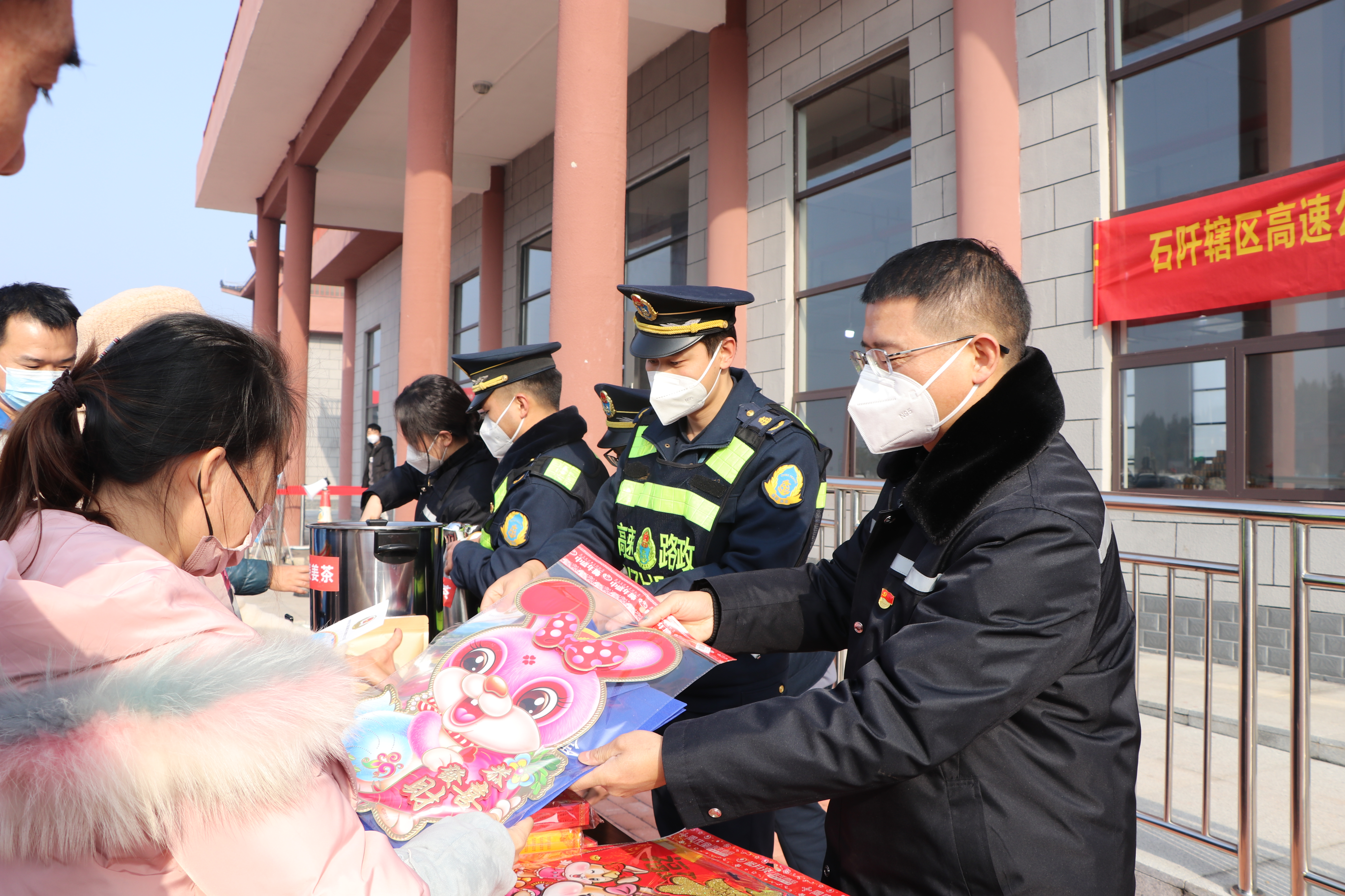 为充分发挥党员先锋模范作用,为司乘人员提供“安心、贴心、暖心”的服务,1月5日至6日,新石公司联合党支部同贵州省交通综合行政执法二支队七大队党支部、六支队五大队党支部分别在湄潭南服务区、石阡西服务区开展“暖心姜茶伴黔行˙党员服务”志愿服务活动,为司乘人员准备姜茶,赠送春节对联,分发安全手册,让广大司乘朋友回家的路变得更有温度。
