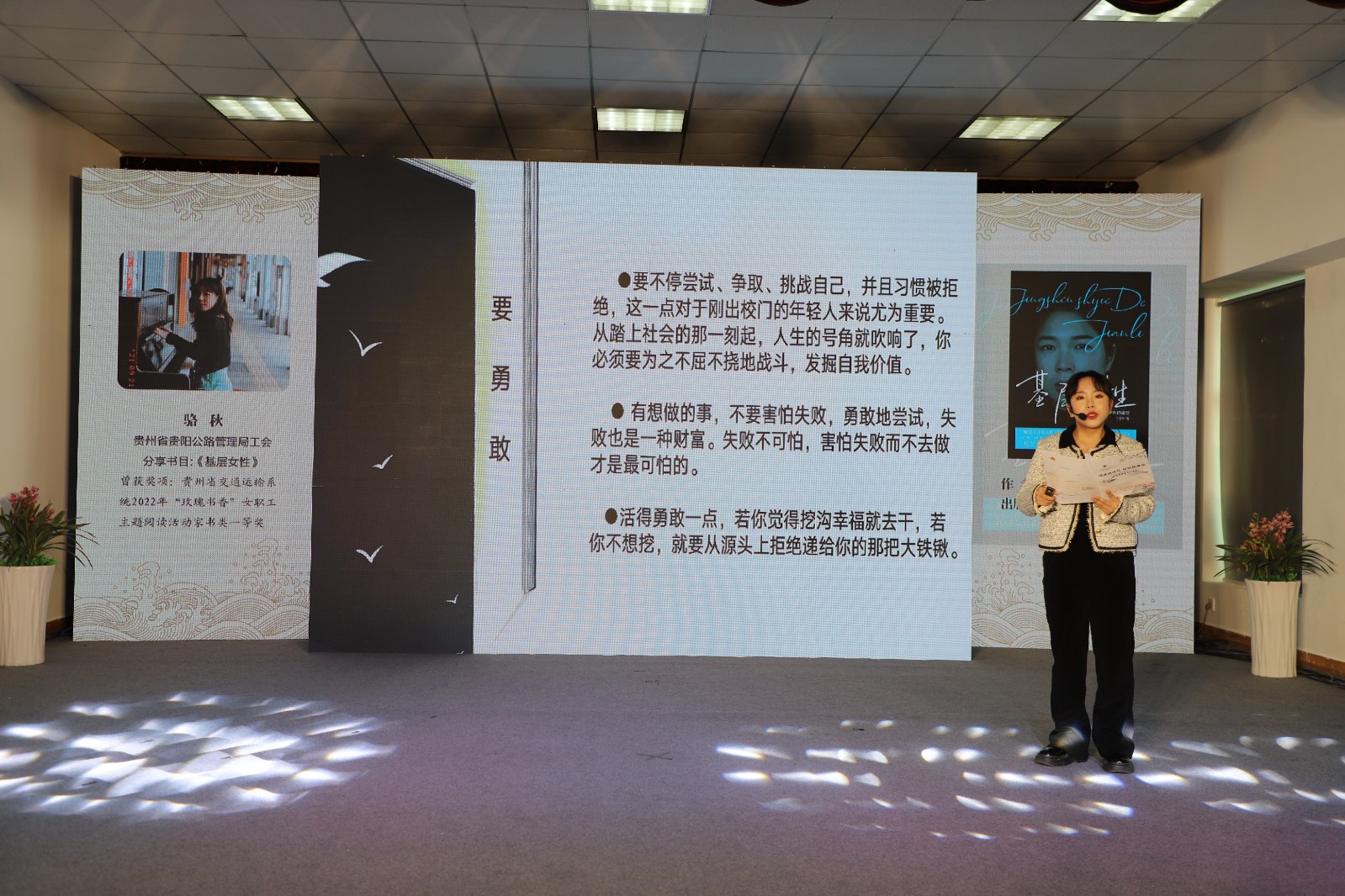 随后,在省交通运输系统2022年“玫瑰书香”女职工主题阅读活动中获得征文类、家书类一等奖的6位选手,在现场分享了她们的读书收获和感悟,通过她们充满感情的分享讲述,让现场观众一次次被书中内容所吸引,被书中的精神所感动。