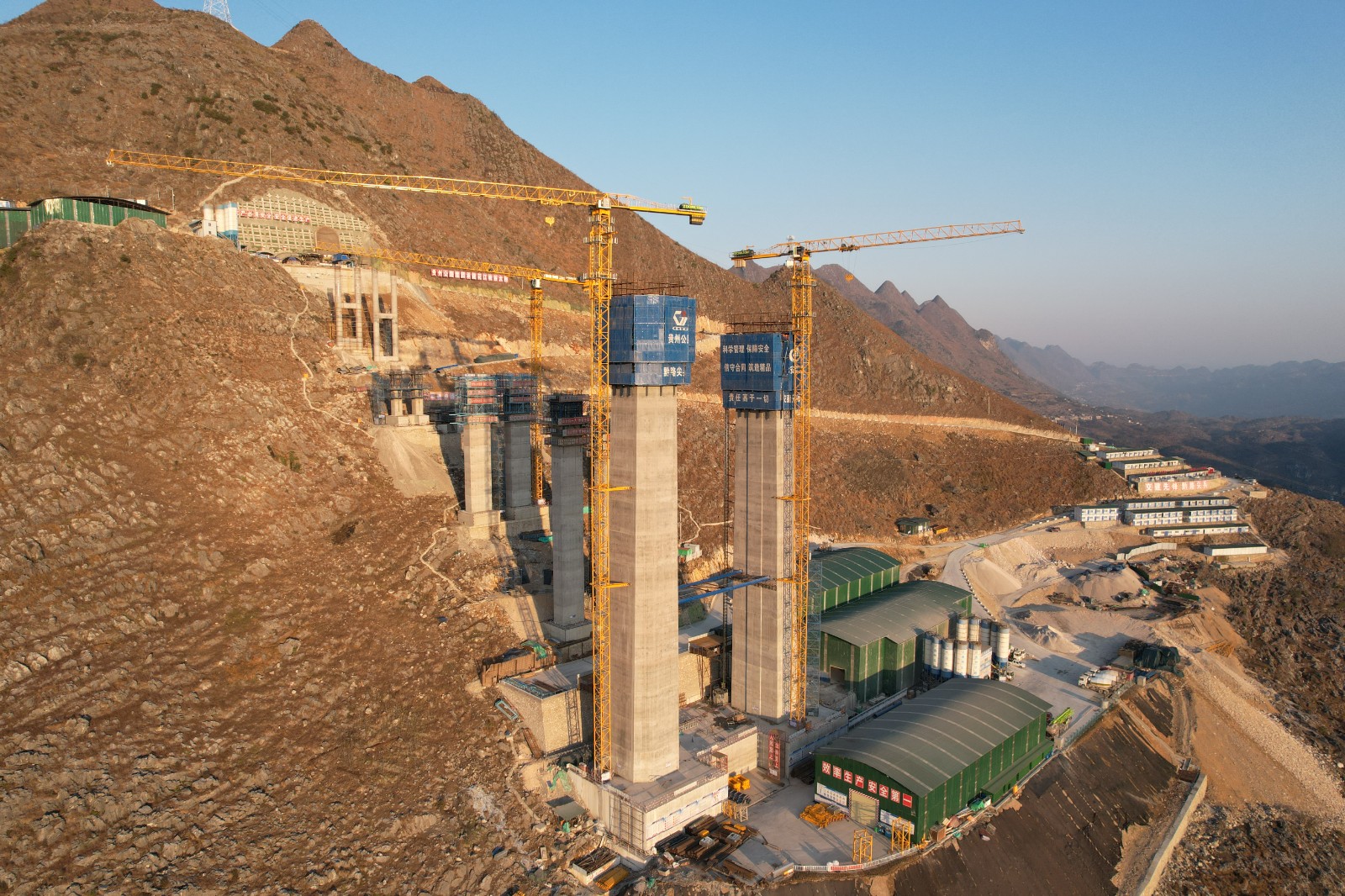 花江峡谷大桥5号主塔及引桥施工中