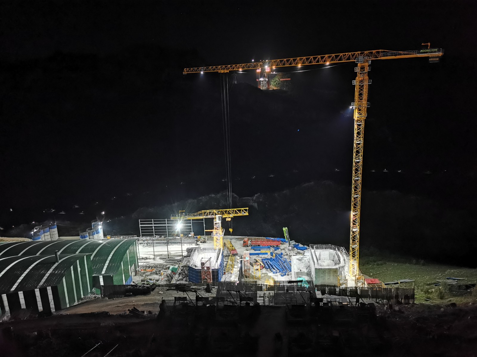 夜色中的花江峡谷大桥施工现场