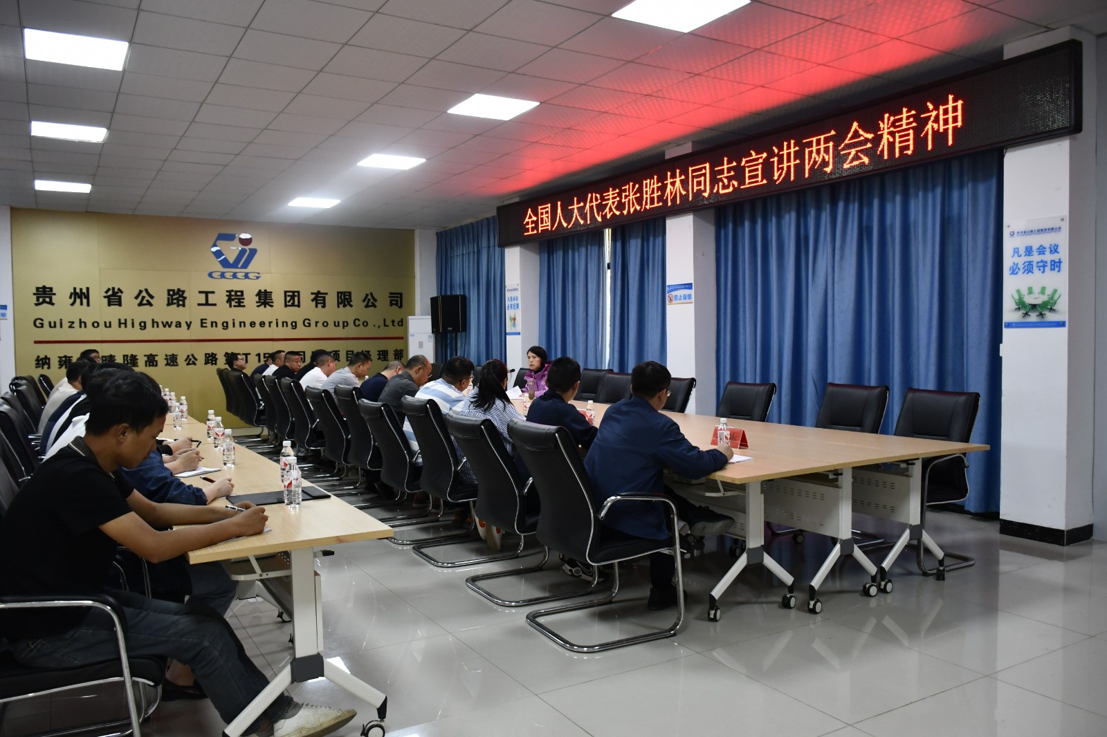 为将全国两会精神传递到火热的项目建设一线,连日来,全国人大代表、贵州公路集团副总经理、总工程师张胜林奔赴项目建设现场,把“精神大餐”送到一线职工中。