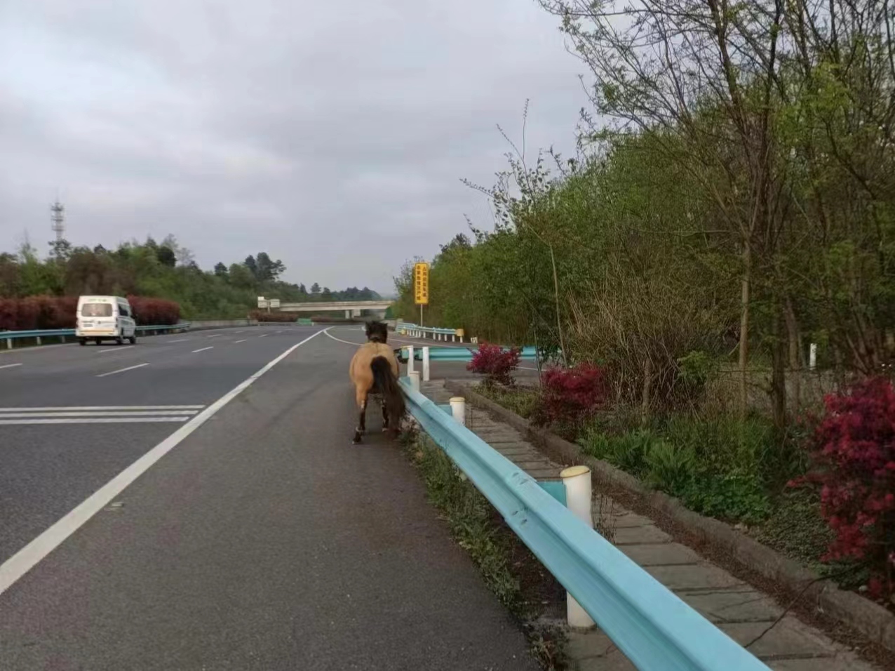 4月5日18时39分,花安高速贵安综合保税区应急队接到报警,安顺往贵阳方向下行21.6公里处有5匹马在高速上狂奔,现场情况十分危急,给过往车辆带来了巨大安全隐患,应急中队长王勇立即带队前往现场处置。