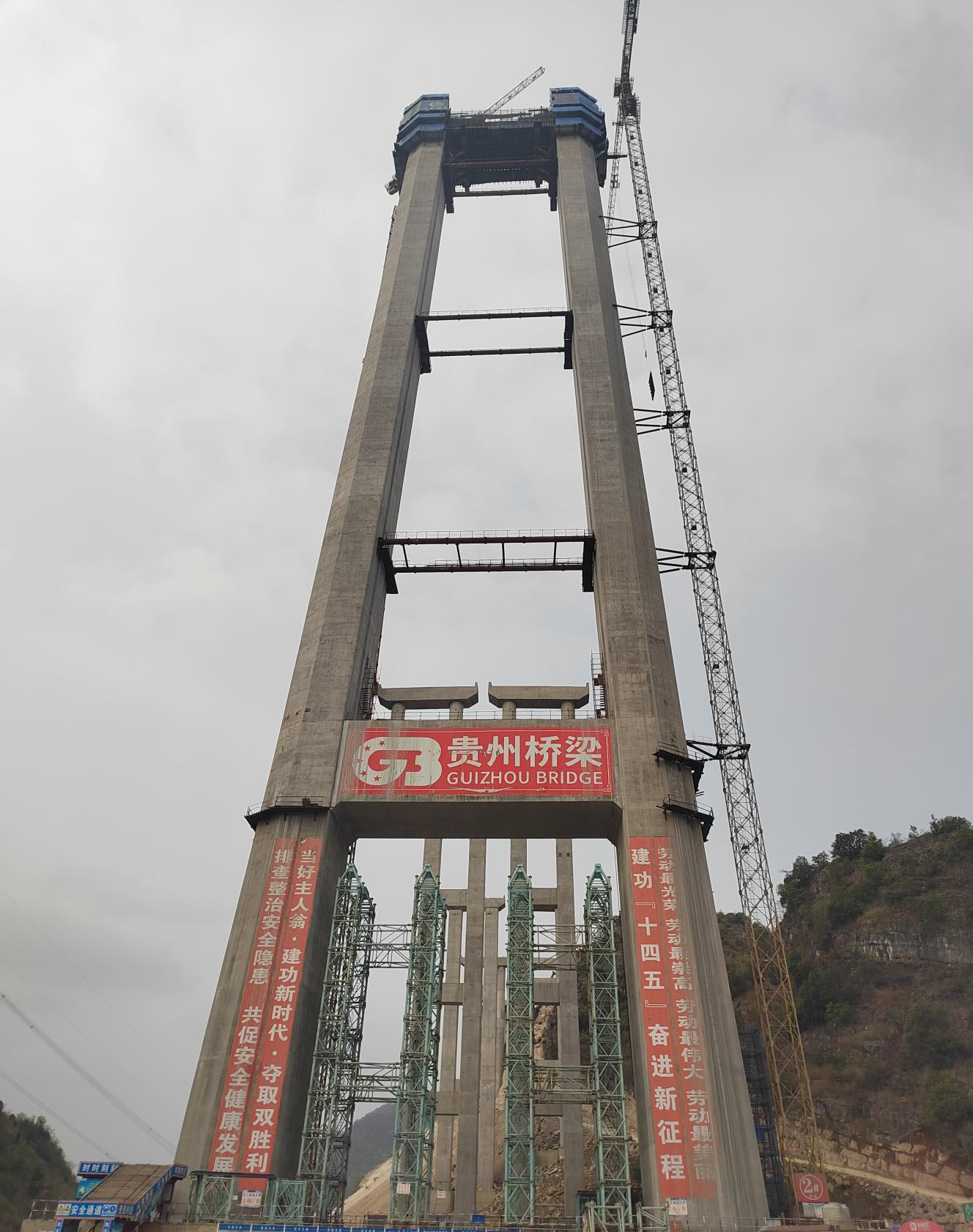 花江峡谷大桥6#墩墩高204米,自2022年1月18日开工建设,从孔桩开挖到主塔上横梁混凝土顺利浇筑完成,历时1年3个月。自开工以来,六安公司党支部始终坚持“两个一以贯之”,深入开展“交建先锋·旗红六安”党建品牌创建工作,强化党建引领,关键岗位、关键工序、关键环节上,以红色力量助推项目高质量高标准建设。“党旗攻坚”、“党旗提质”、“党旗护绿”、“党旗保安”四大行动并举,相继帮助施工单位克服了峡谷横风大、高墩泵送砼难度高、大体积混凝土内外温差大、疫情防控等多重困难挑战,为花江峡谷大桥安龙岸6#墩高品质高标准建成奠定了坚实基础。