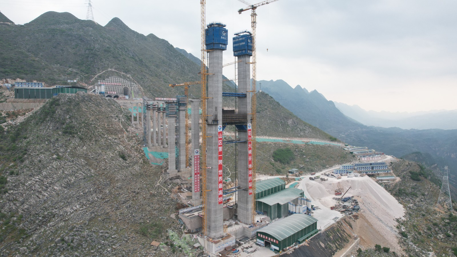 截至目前,花江峡谷大桥5号主塔左右幅分别突破162.7、168.7米。