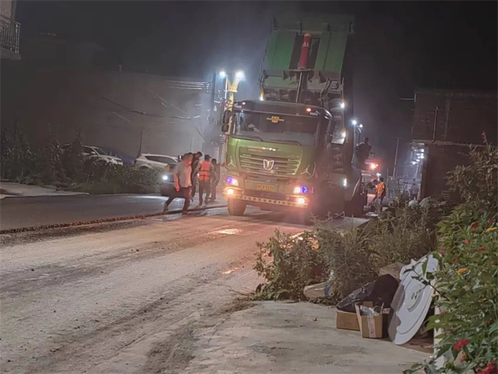 “长坝镇中学路段长488米、宽8米,为了不妨碍居民的日常出行,我们连夜完成了施工。”贵金路面三标项目总工程师龚建荣说。