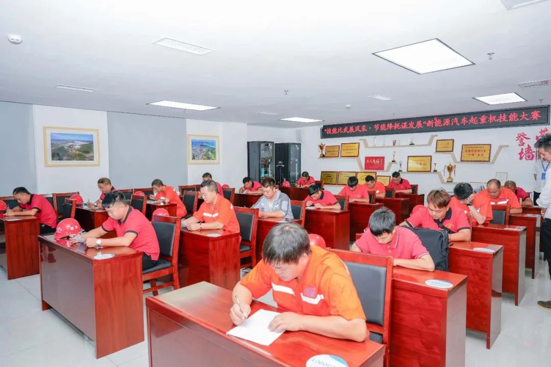 本次比赛采用理论+实操的方式进行,理论考试检验了参赛选手对新能源汽车起重机使用规则的了解程度。