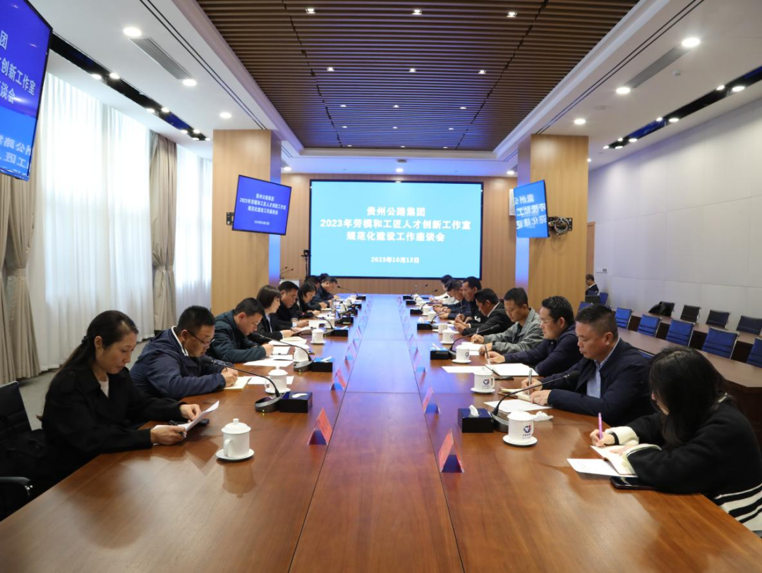 为进一步推进劳模和工匠人才创新工作室规范化建设,搭建交流学习平台,充分发挥劳模和工匠人才创新工作室引领示范作用,10月13日,公路集团2023年劳模和工匠人才创新工作室规范化建设工作座谈会在贵阳召开。公路集团党委副书记、工会主席、监事会主席崔文武,副总经理、总工程师张胜林出席会议并提工作要求。