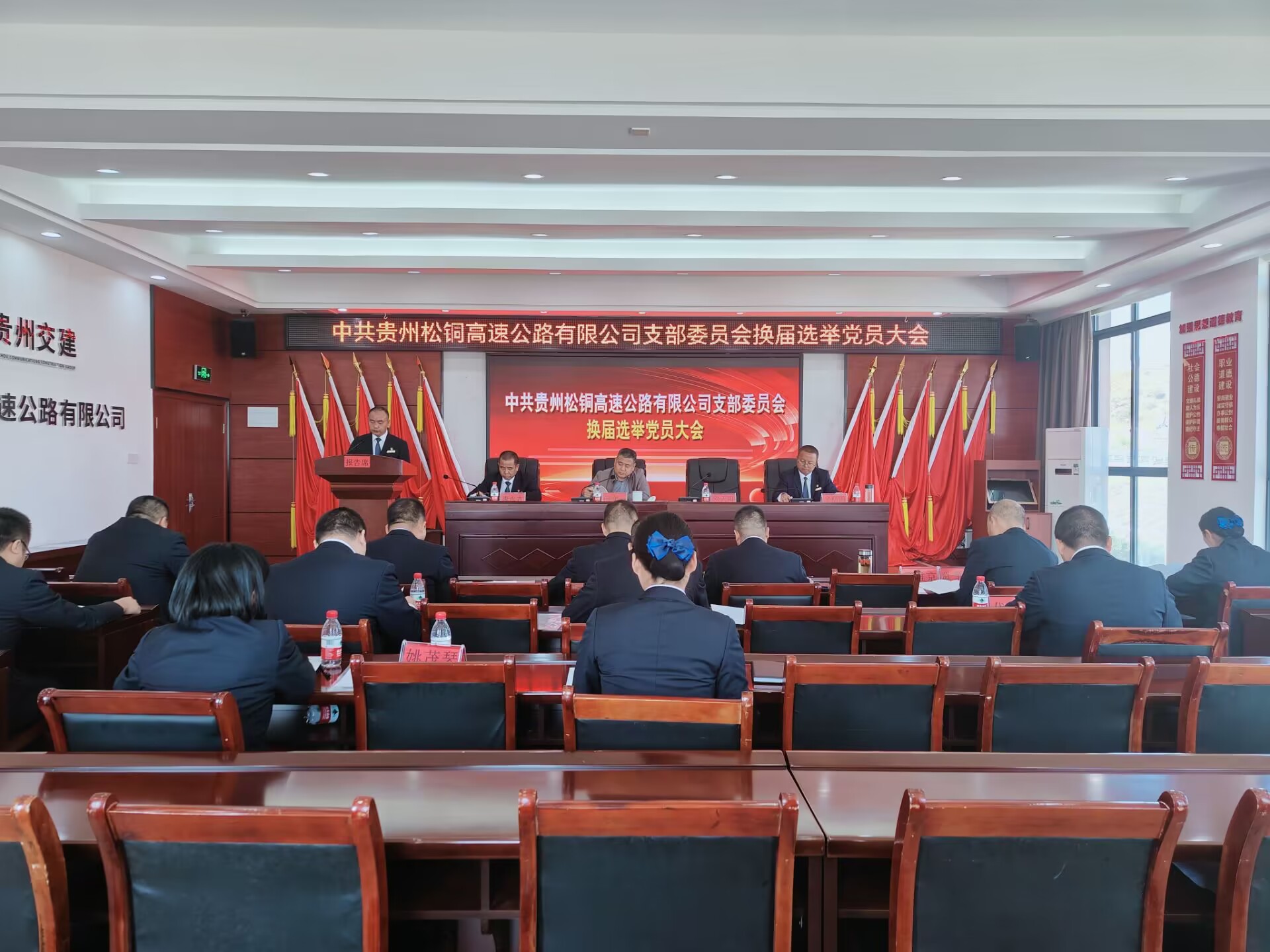 会上,何守一宣读了《关于同意中共贵州松铜高速公路有限公司支部委员会召开党员大会进行换届选举的批复》,刘天阳同志代表上届支部委员会向大会作《党建引领促发展 砥砺奋进出新绩——奋力助推集团高质量党建引领高质量发展》的工作报告,回顾三年工作,分析面临形势,明确目标任务,对未来三年的工作进行规划。随后,大会审议通过了上届支部委员会工作报告,党费收缴、使用和管理情况报告,换届选举办法,通过监票人、计票人名单。采用无记名投票方式差额选举刘天阳、金照国、唐永吉3名同志为新一届支部委员会委员。