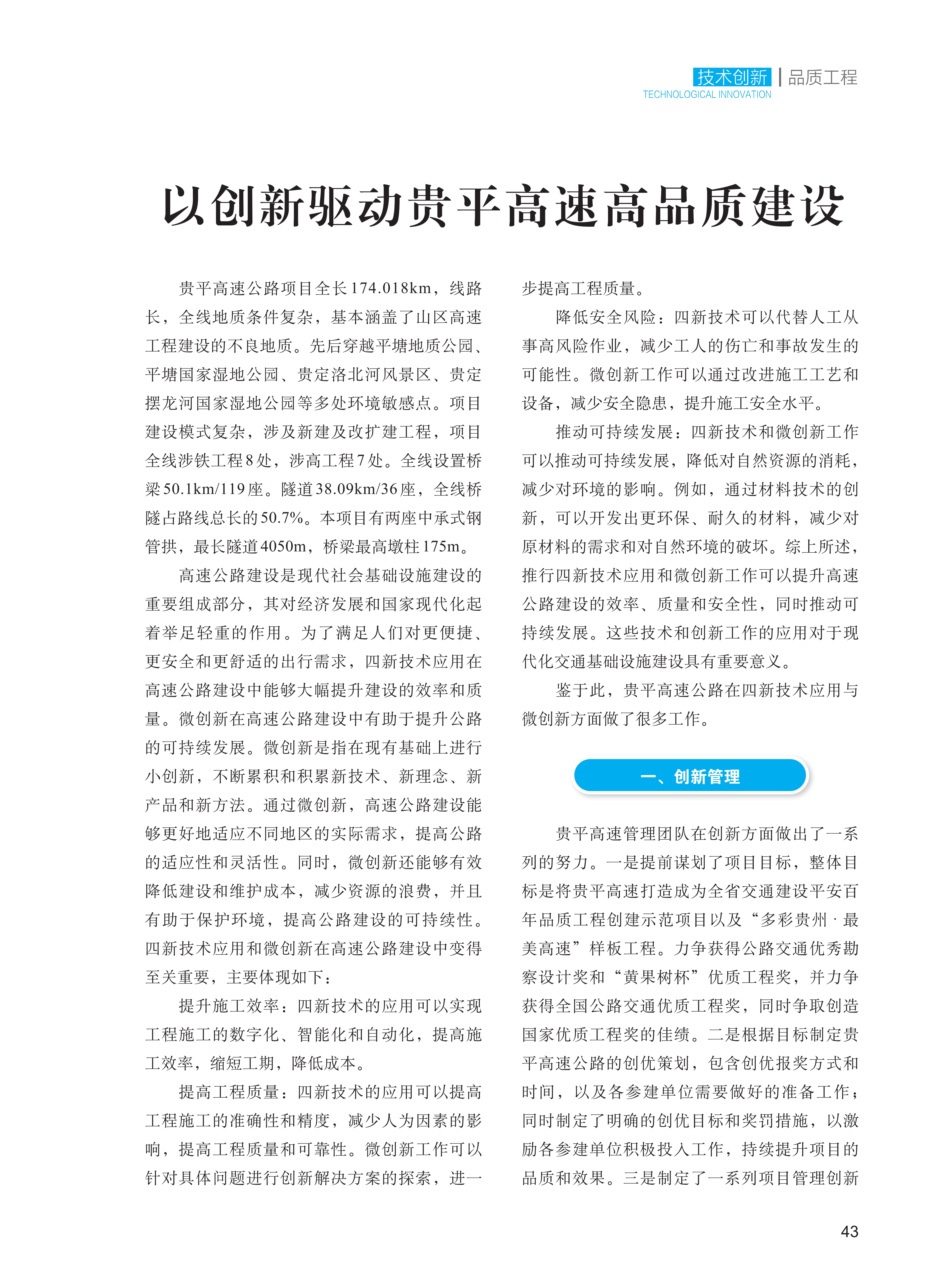 编者按:近日,由交通运输部公路科学研究院主办的《平安百年品质工程》杂志推出贵平特刊,从建设动态、创建经验、技术创新、管理创新、品质文化等多个方面,深度聚焦贵州交建集团投资建设的贵平高速打造平安百年品质工程示范项目经验做法。现逐步推出相关文章供交流分享。