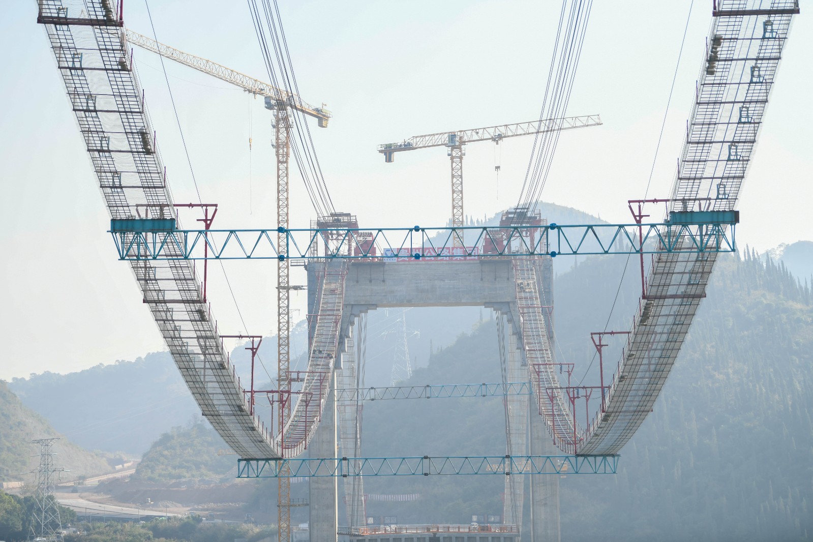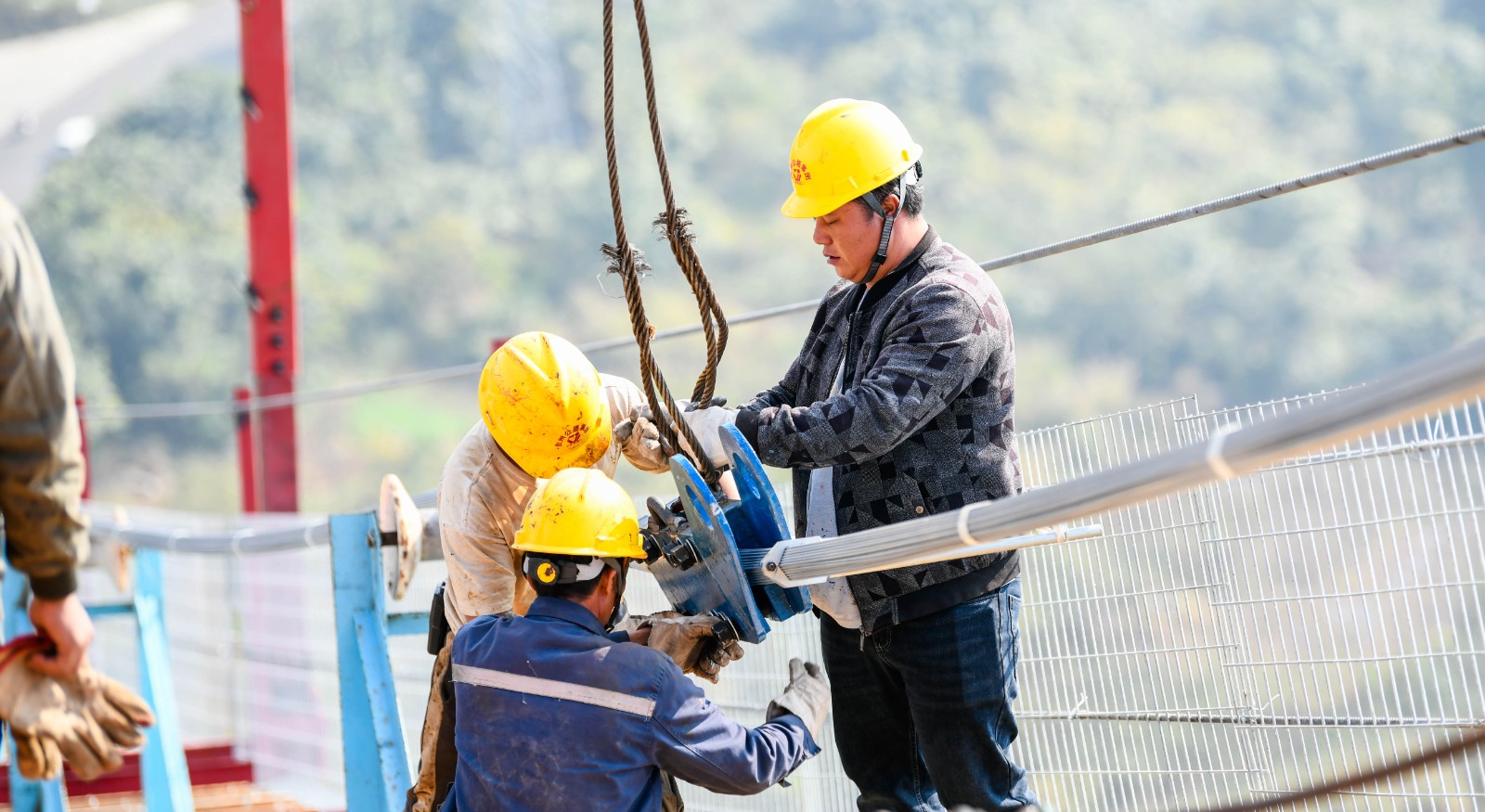 近日,由公路集团承建的黔西南州金州大桥项目首根基准索股顺利牵引,大桥全面进入上构施工阶段。