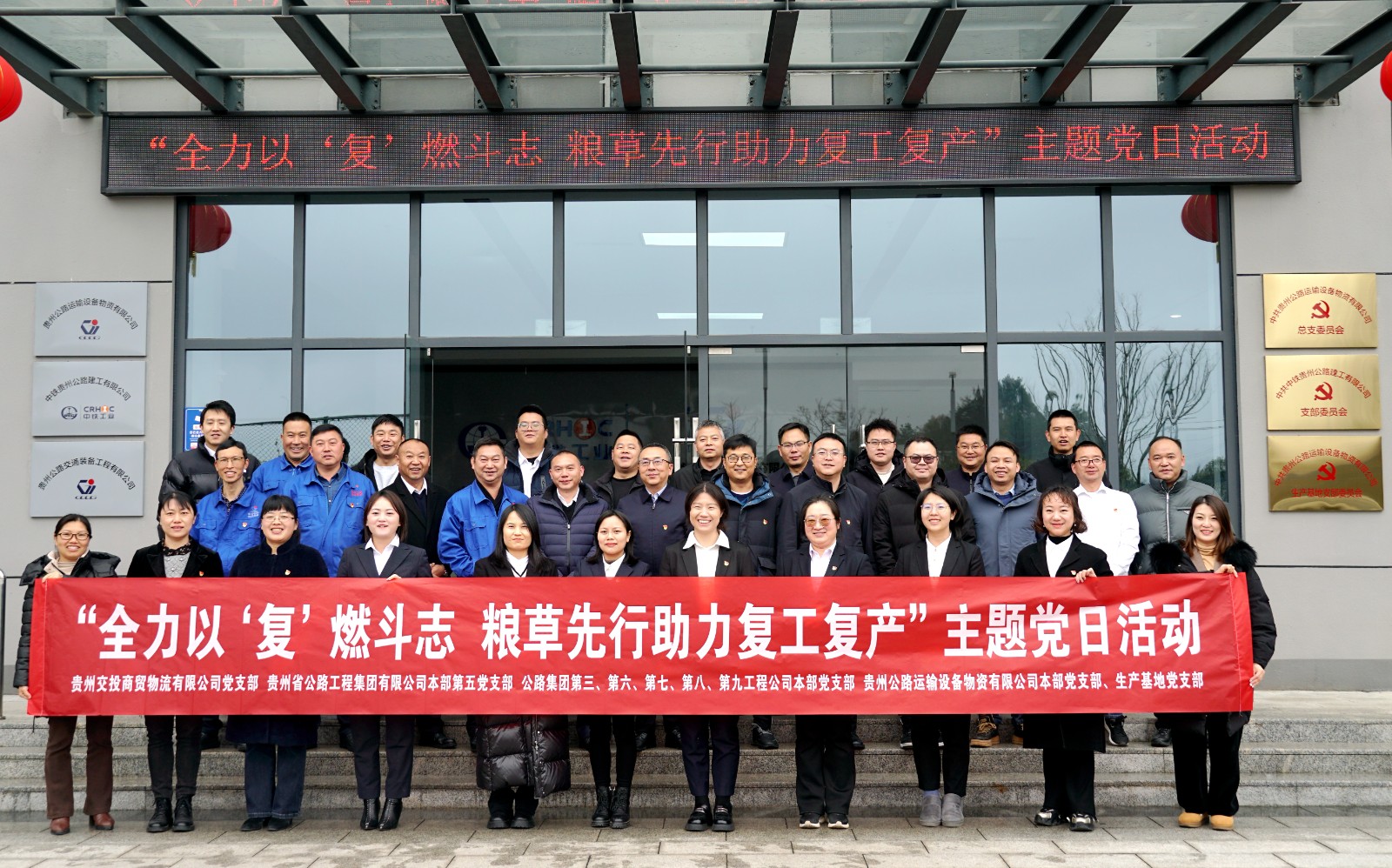 2月23日,交投商贸党支部与贵州省公路工程集团有限公司本部第五党支部、贵州公路运输设备物资有限公司本部党支部等八家党支部相聚贵州公路集团惠水交通产业园,联合开展“全力以‘复’燃斗志 粮草先行助力复工复产”联建共建主题党日活动。