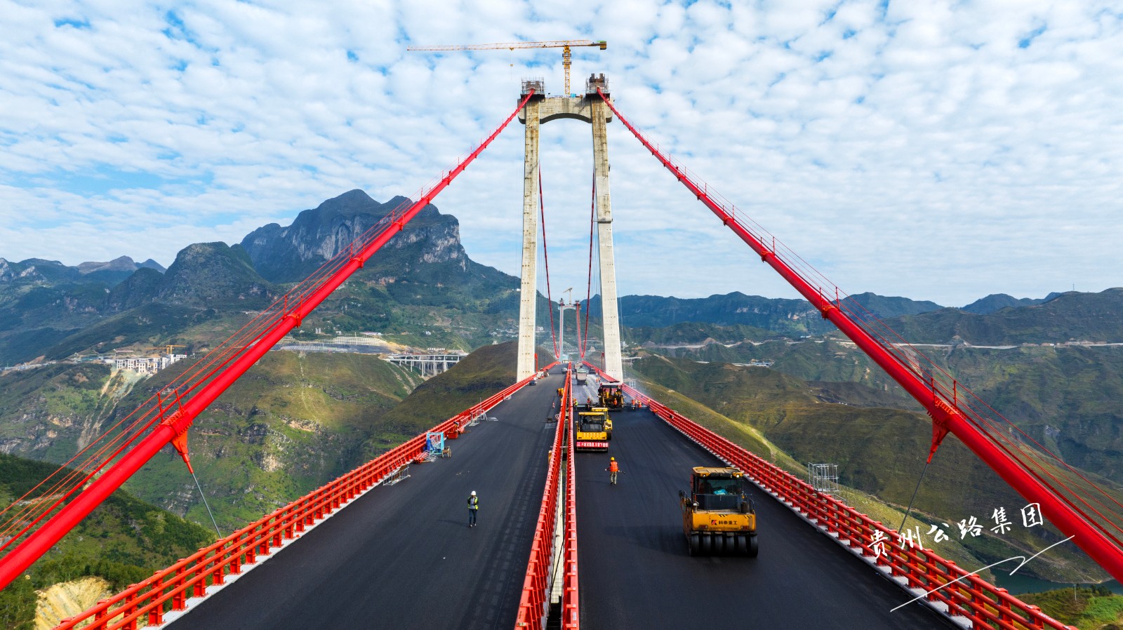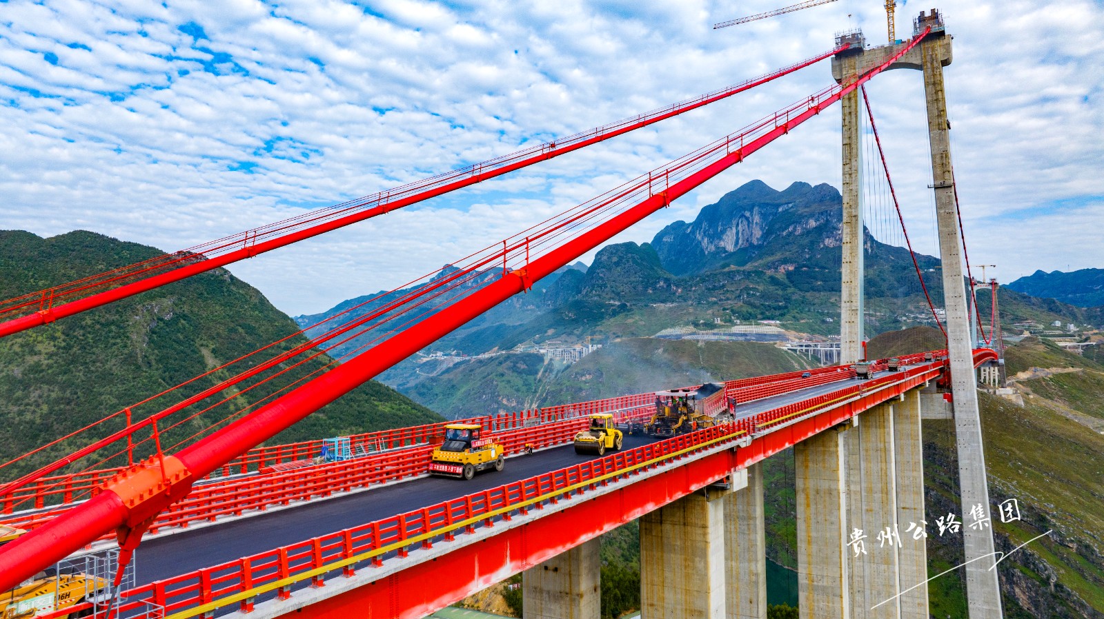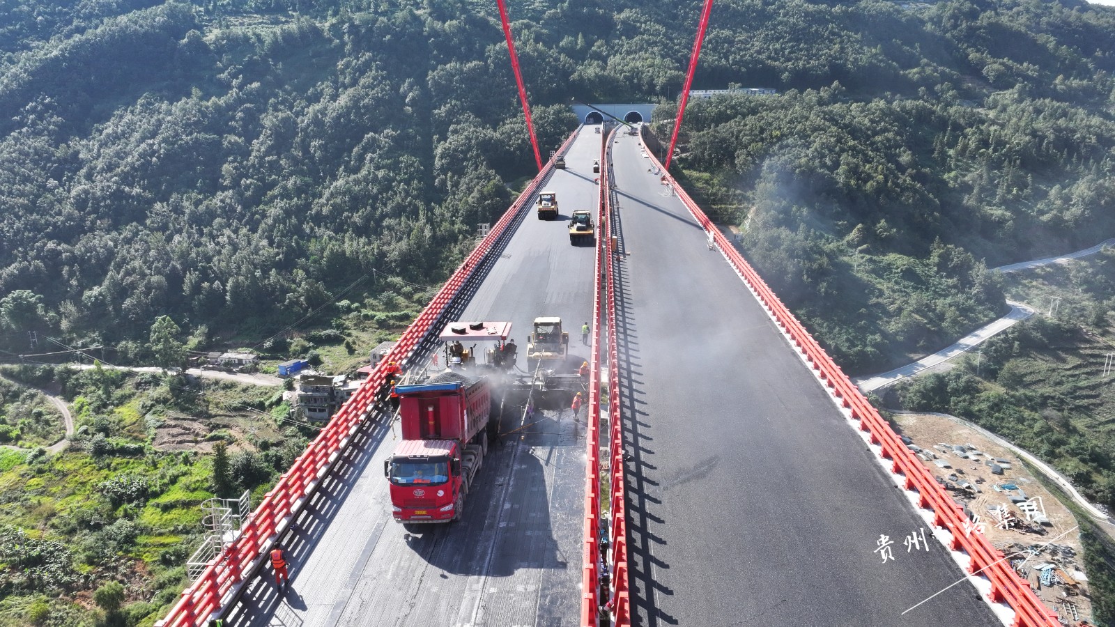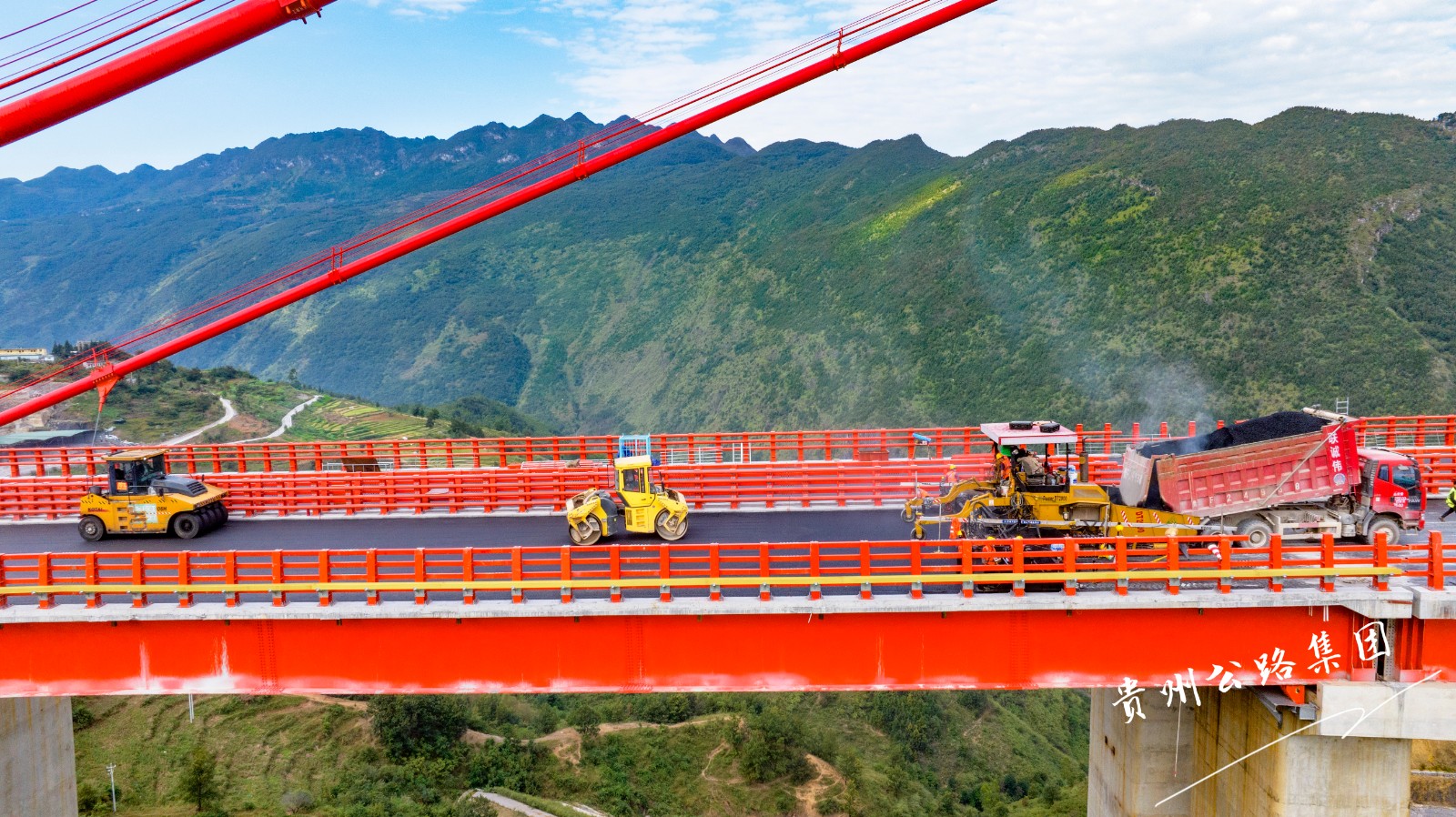 近日,公路集团顺利完成纳晴高速公路牂牁江大桥沥青路面摊铺工作。
