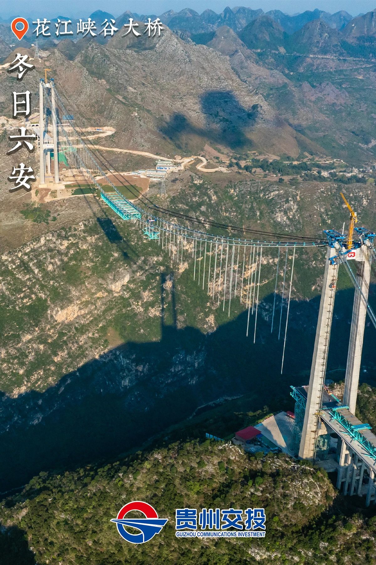 贵州交投所属交建集团投资建的六安高速全长150.104公里,总投资245.3149亿元,全线桥隧比为43.78%,共有桥梁102座。其中,花江峡谷大桥是贵州省桥旅融合示范性项目工程,大桥主桥跨径1420米,桥面至水面高度625米,建成后,花江峡谷大桥不仅主桥跨径居山区桥梁跨径世界第一,更将成为新的山区峡谷世界第一高桥。同时,将通过建设“桥梁观光+桥梁运动体验+旅游服务”为一体的桥旅融合综合体,努力打造贵州桥旅融合3.0样板。